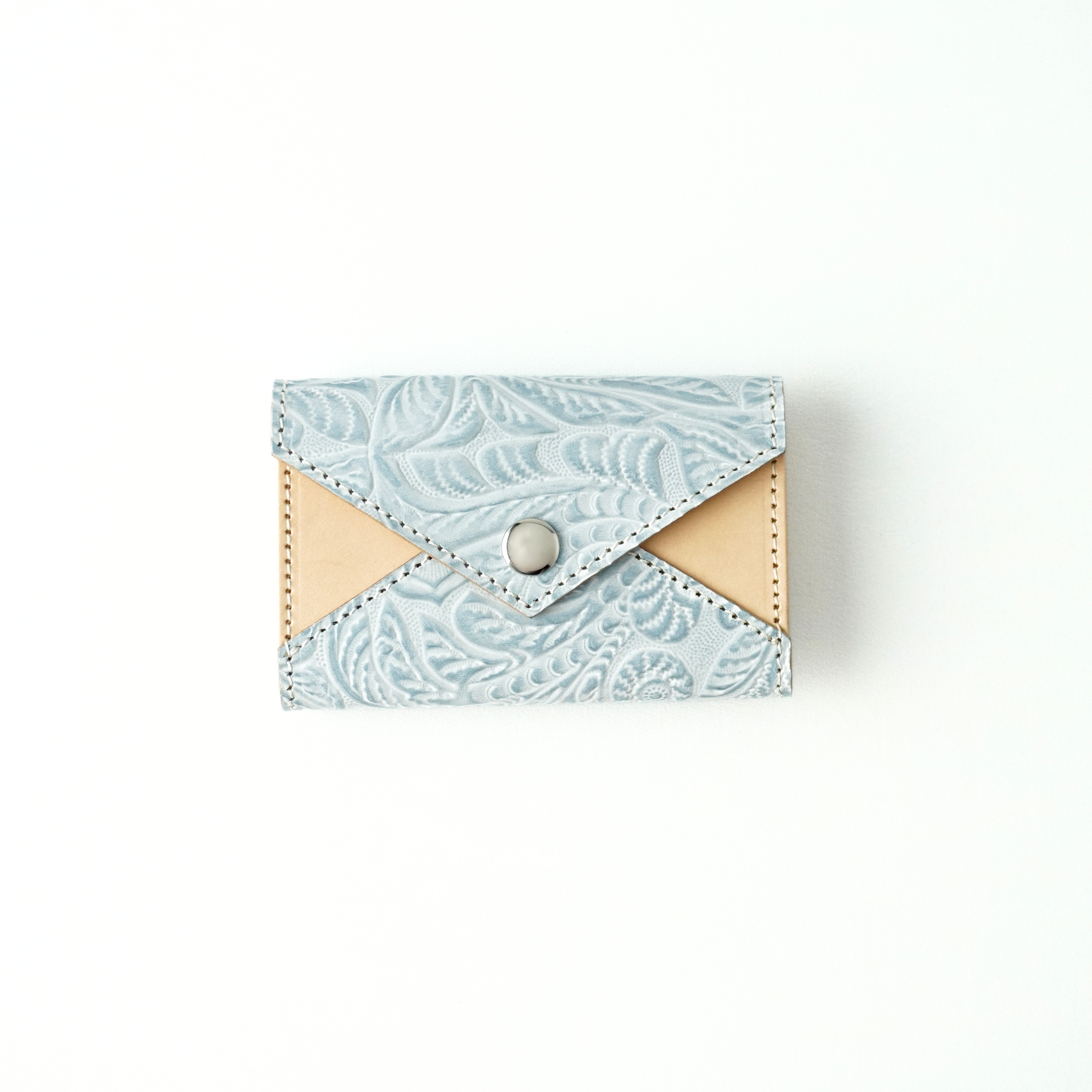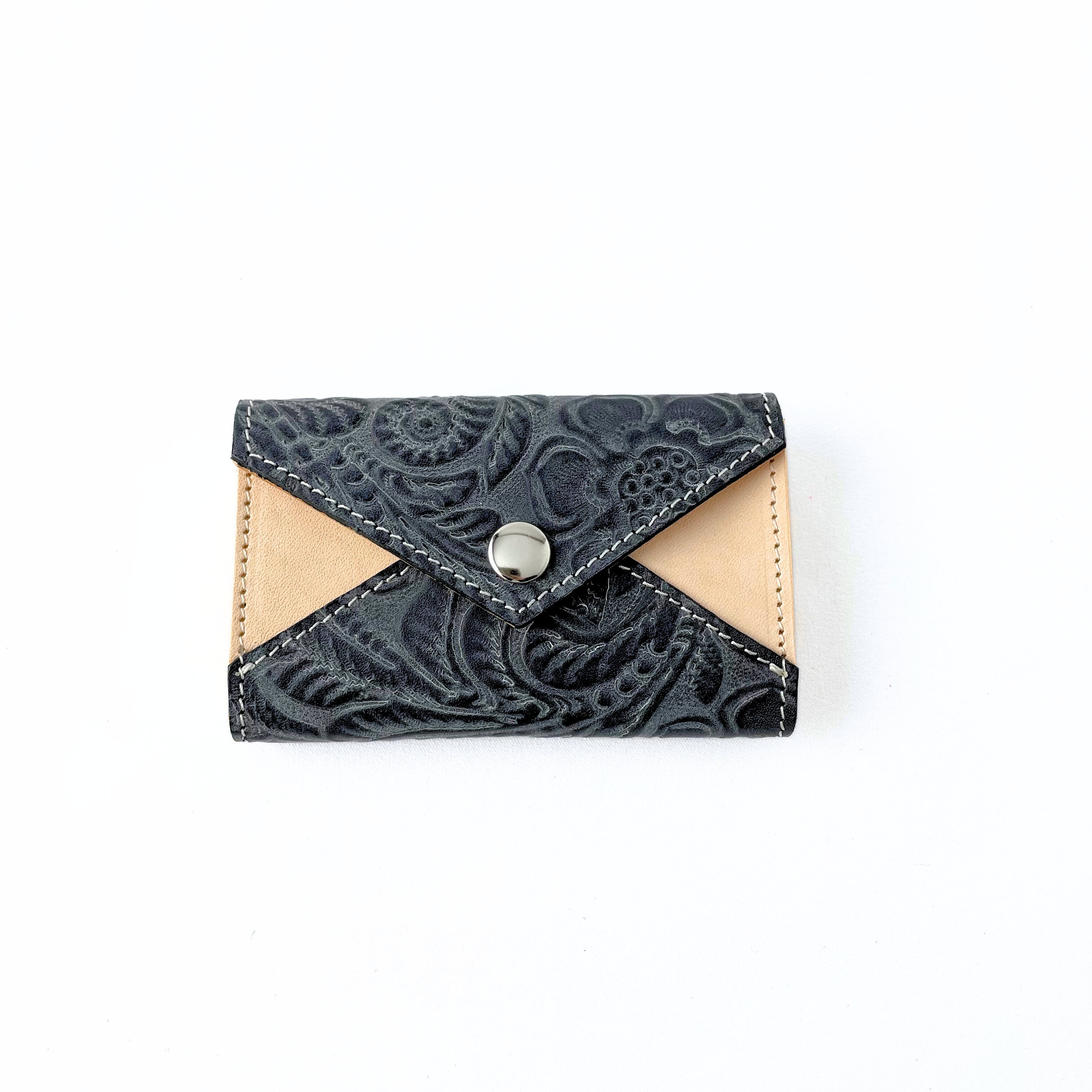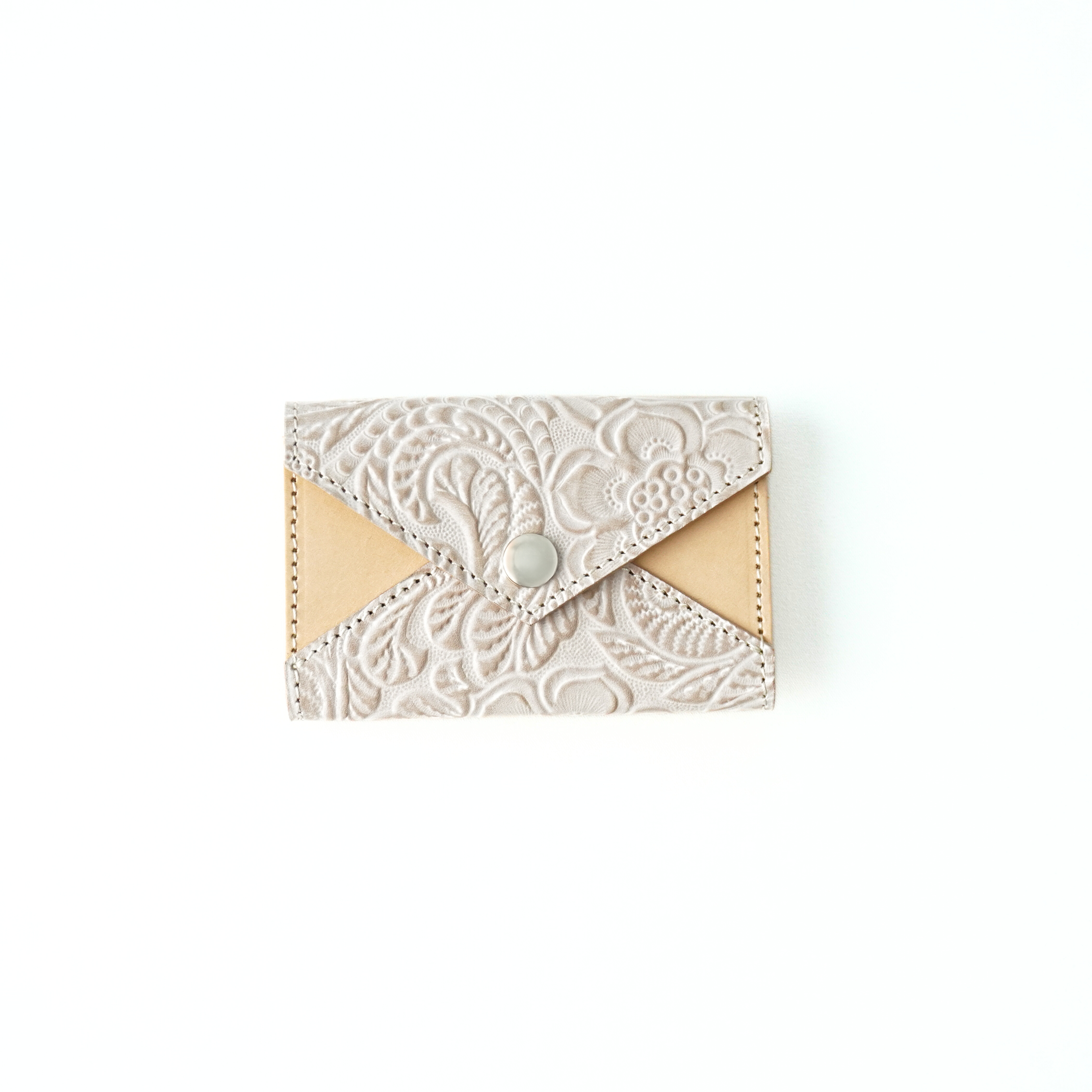 この名刺・カードケースは、フラワーの型を型押ししたルビナスという革を使用しています。