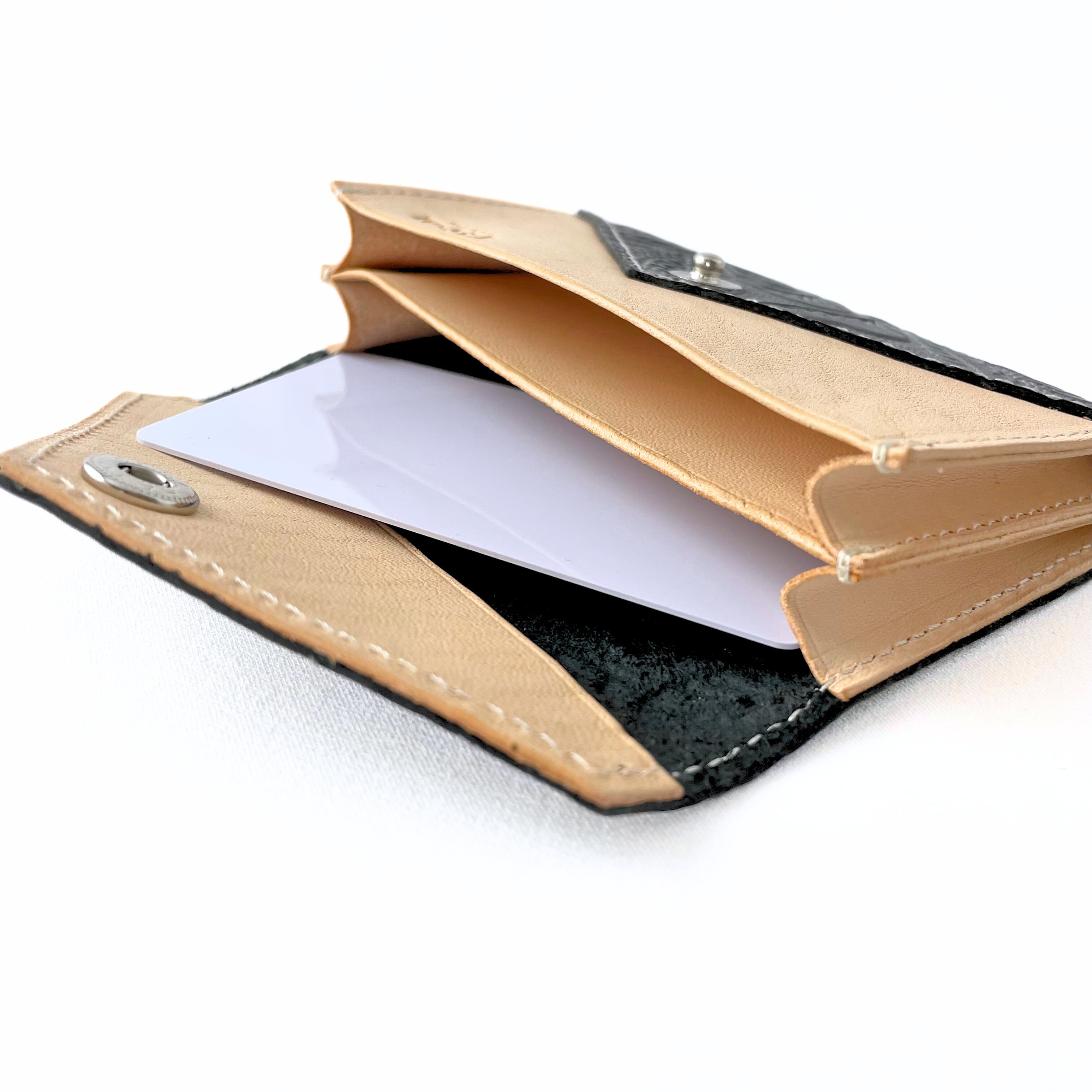 最大でカード15枚、名刺35枚をしっかりと収めることができます。使っていくと艶があがり、より一層深い色に変化していくエイジングを愉しめます。