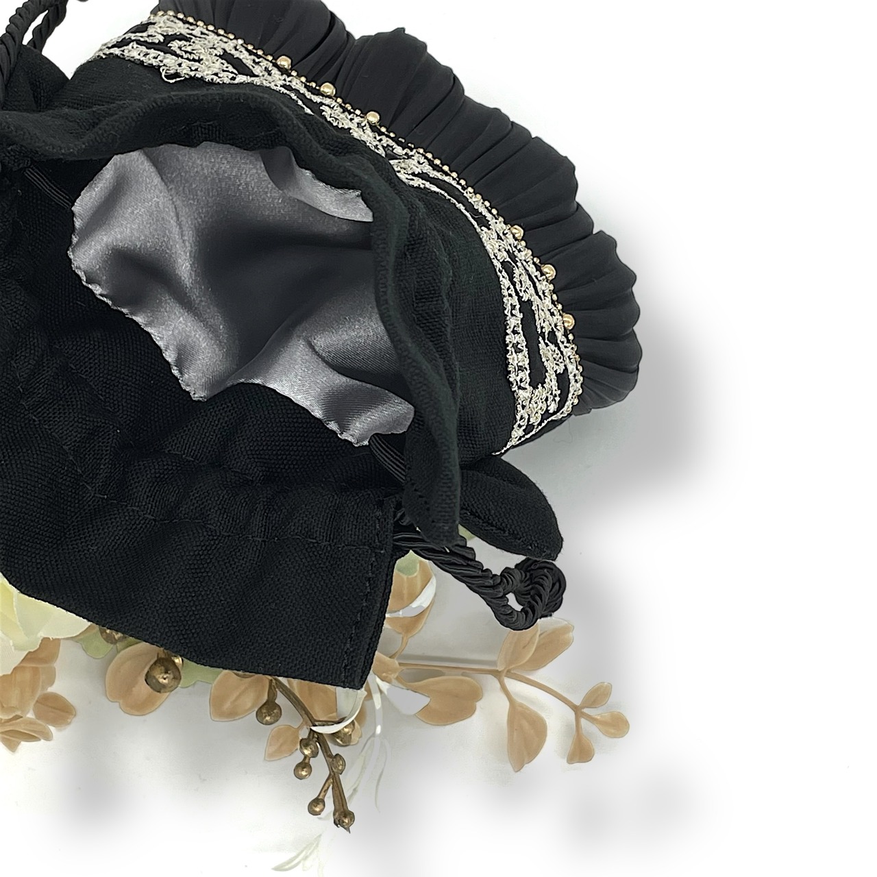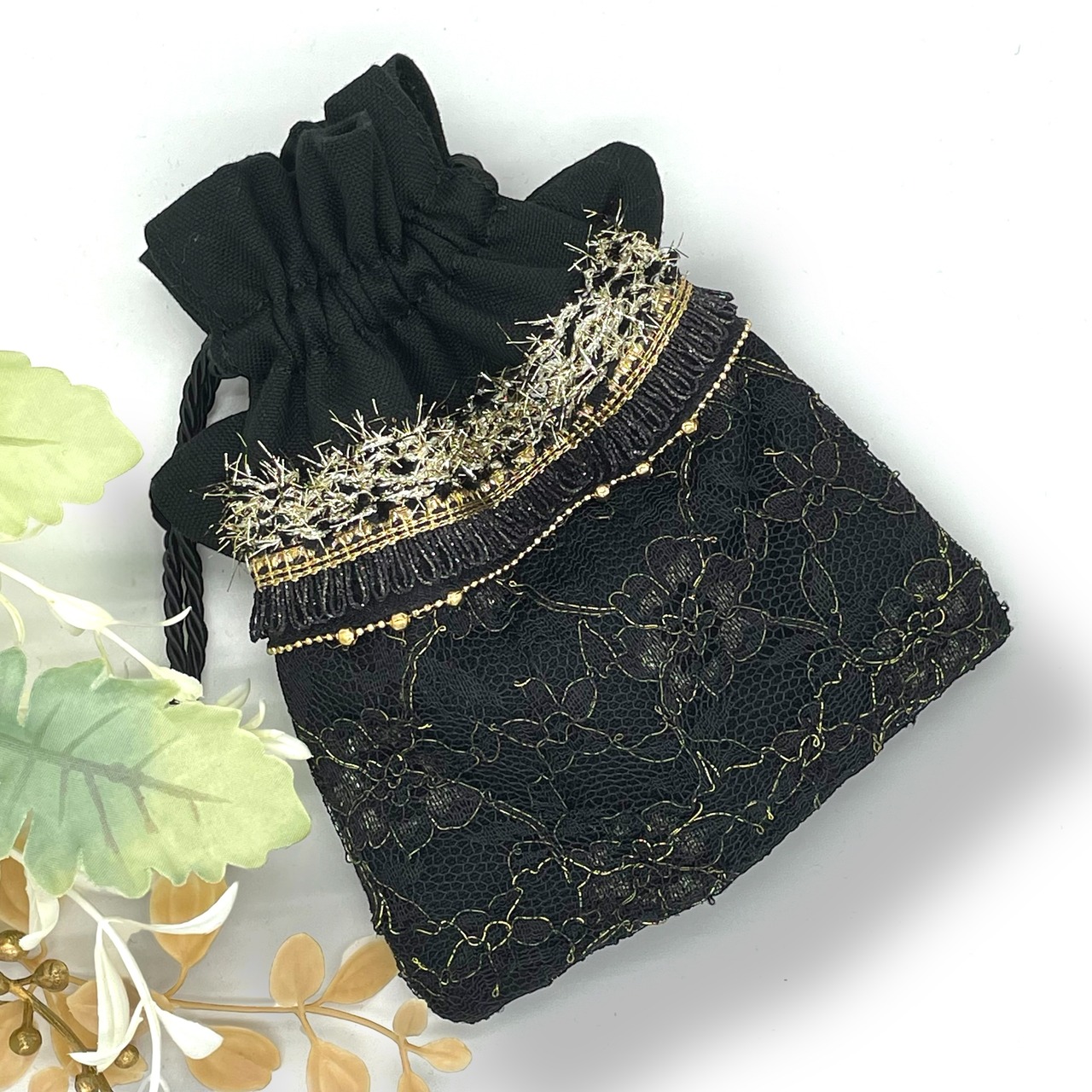 上品でゴージャスな黒猫巾着。