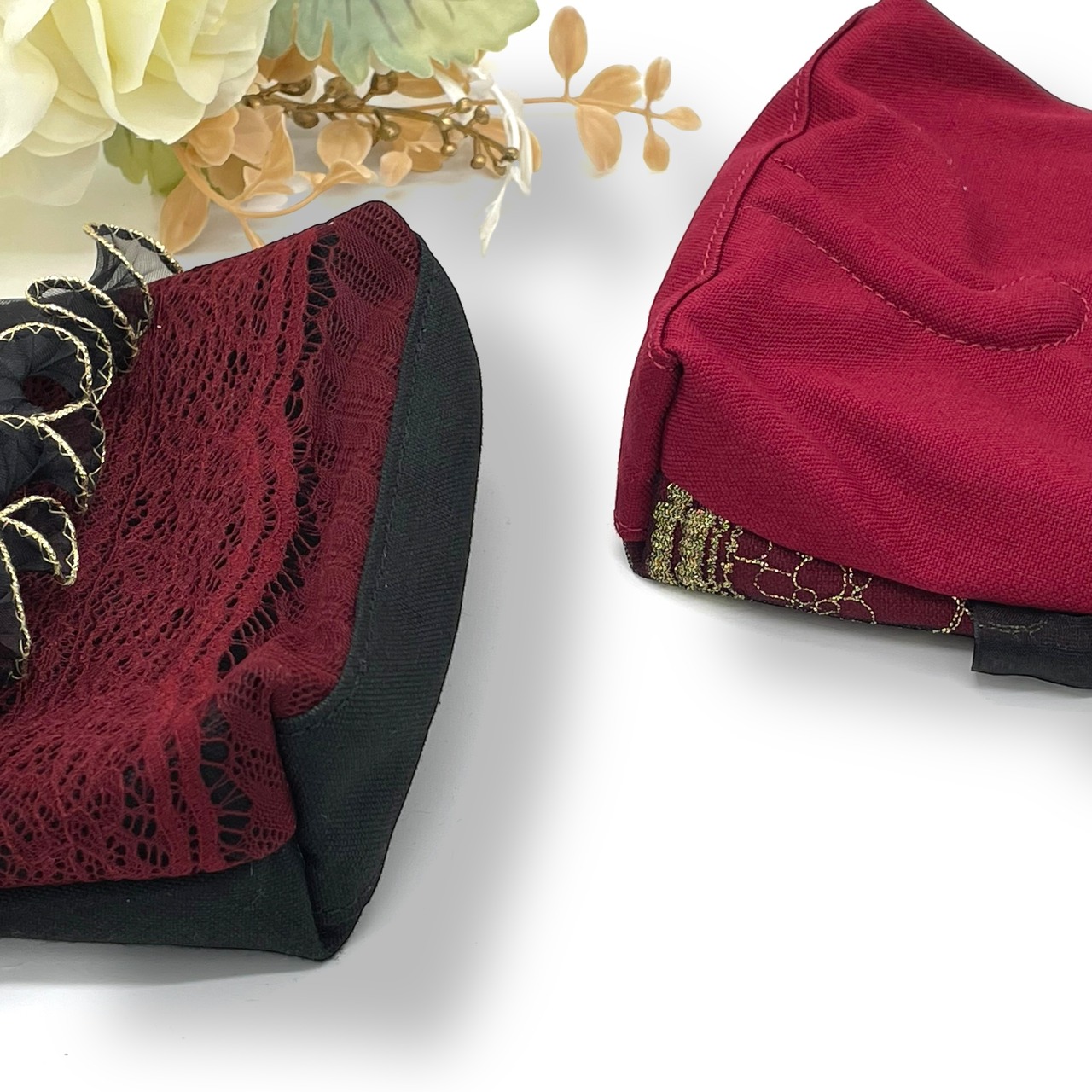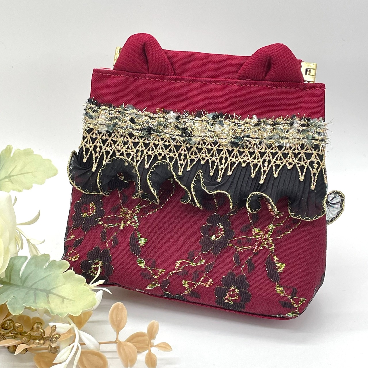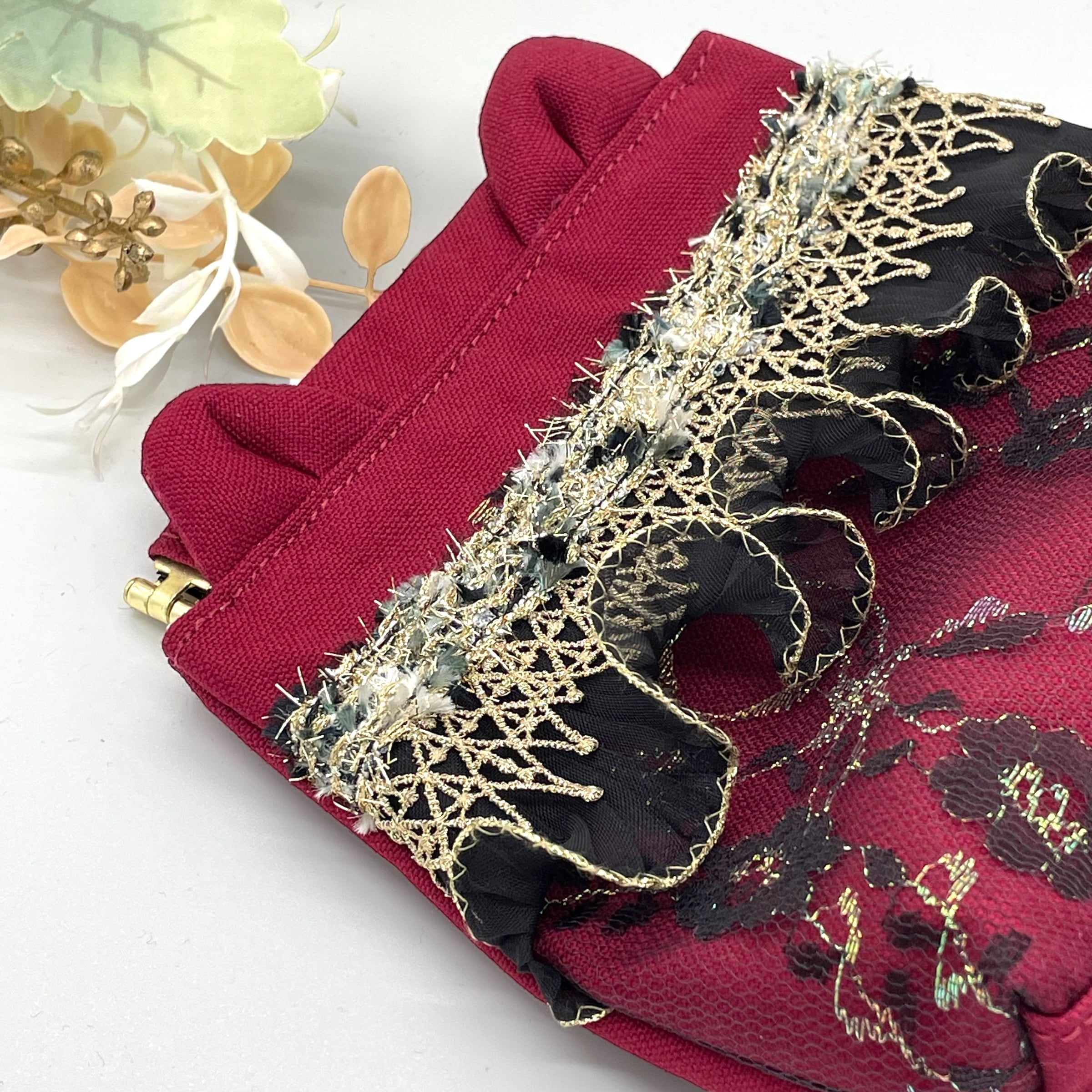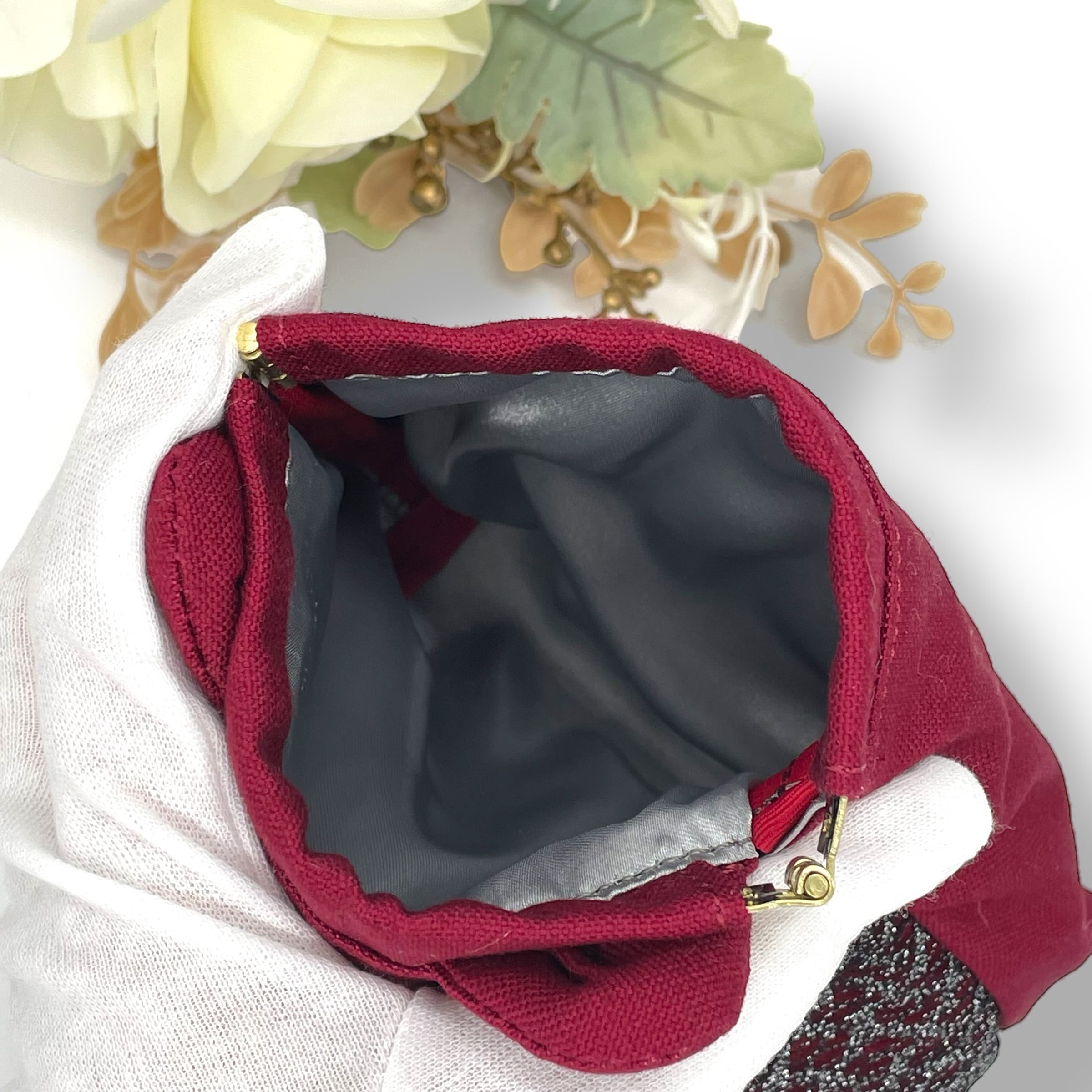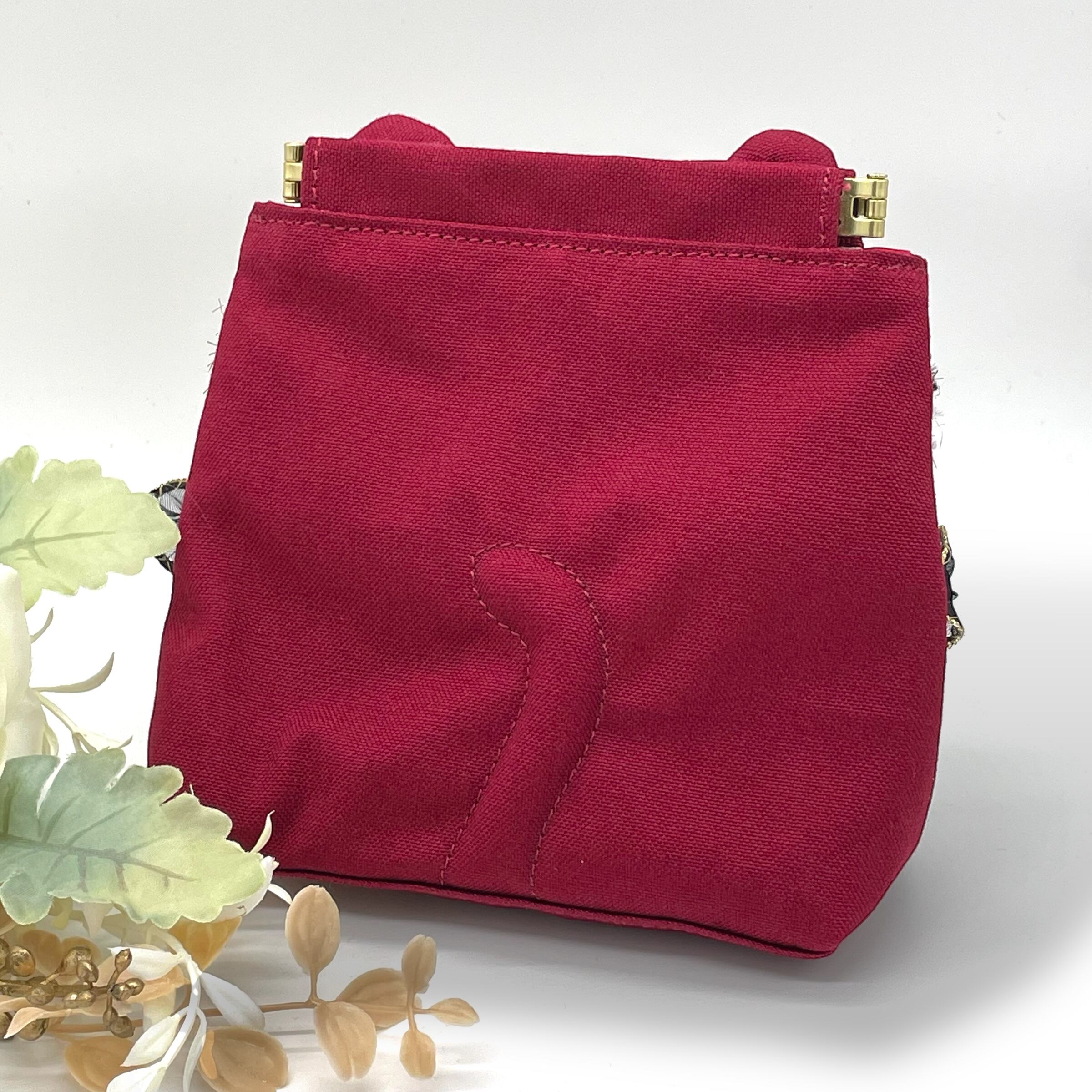 《NOÏRA》深紅猫バネ口金ポーチ(帆布 Ver.)