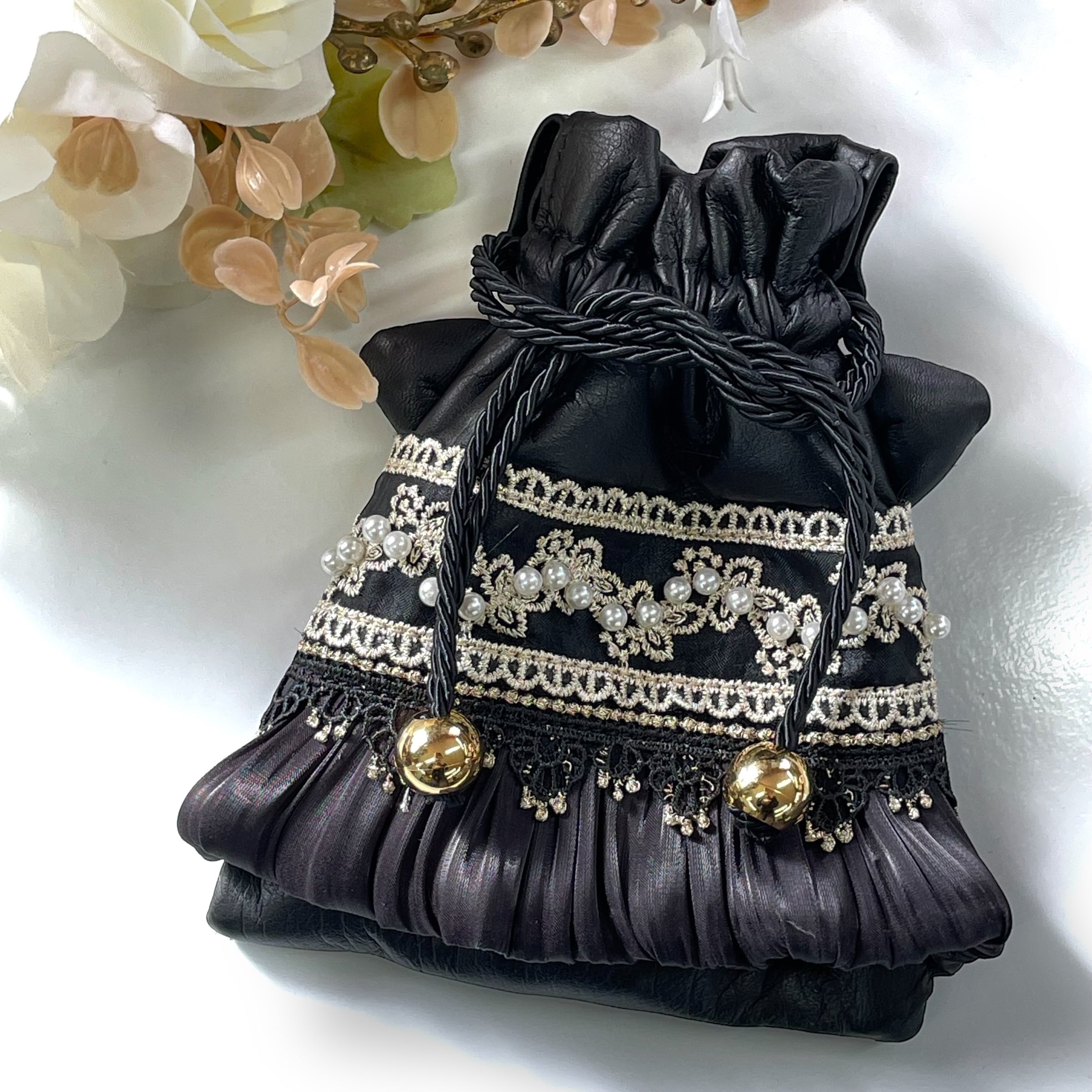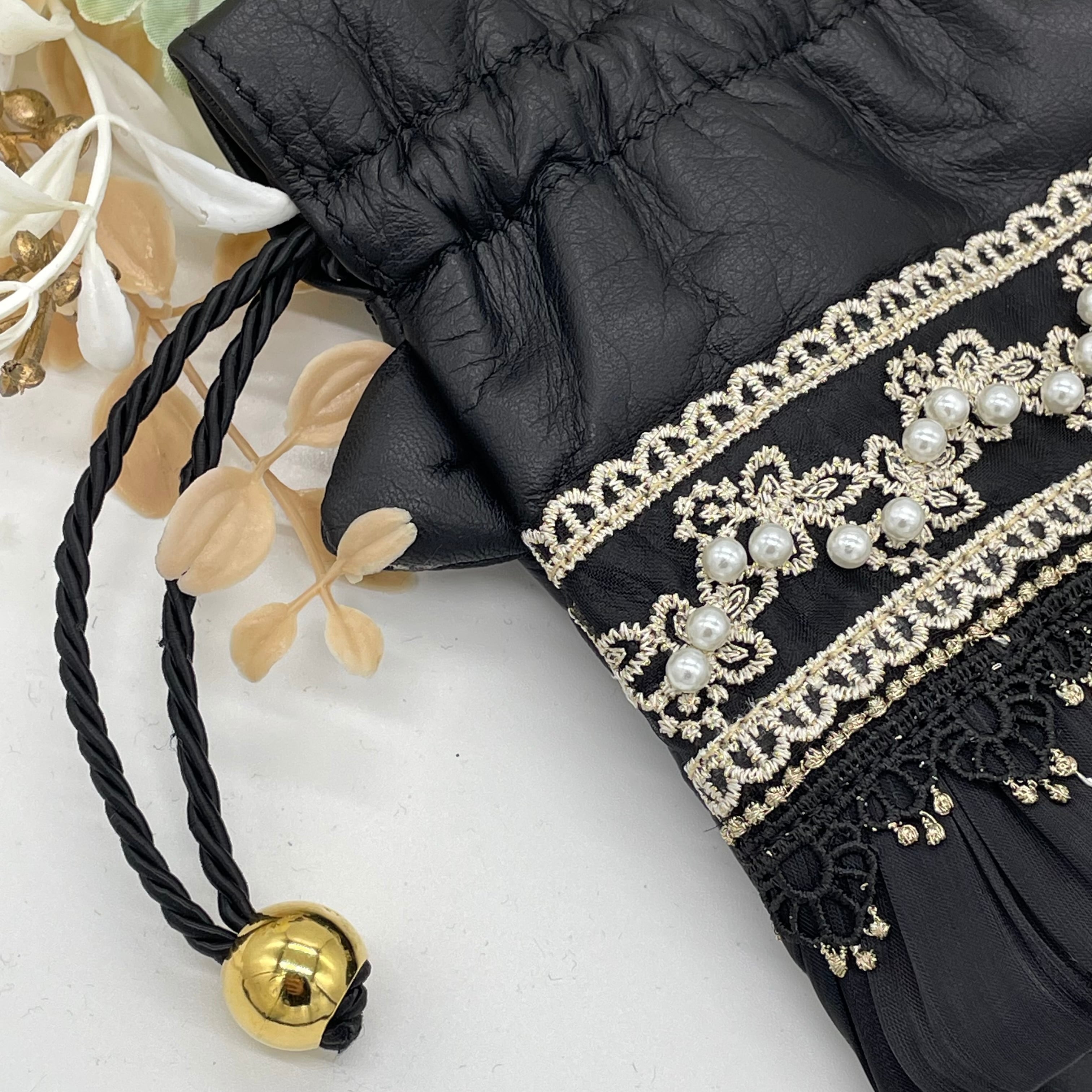 上品でゴージャスな黒猫巾着。