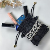 リップや小さな鏡など、日常の小物入れとして便利な黒猫巾着。