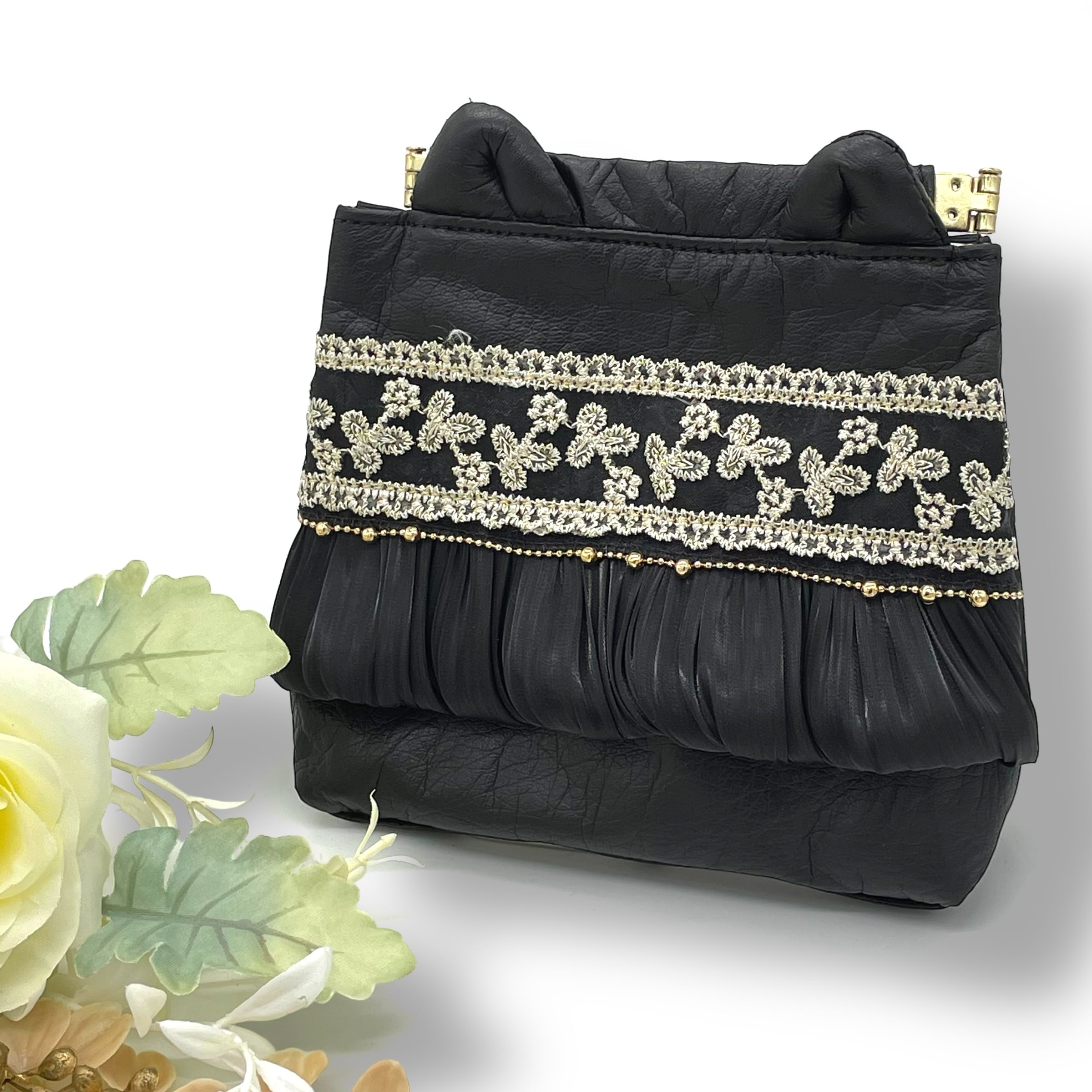 上品でゴージャスな、猫モチーフのバネ口金ポーチ。