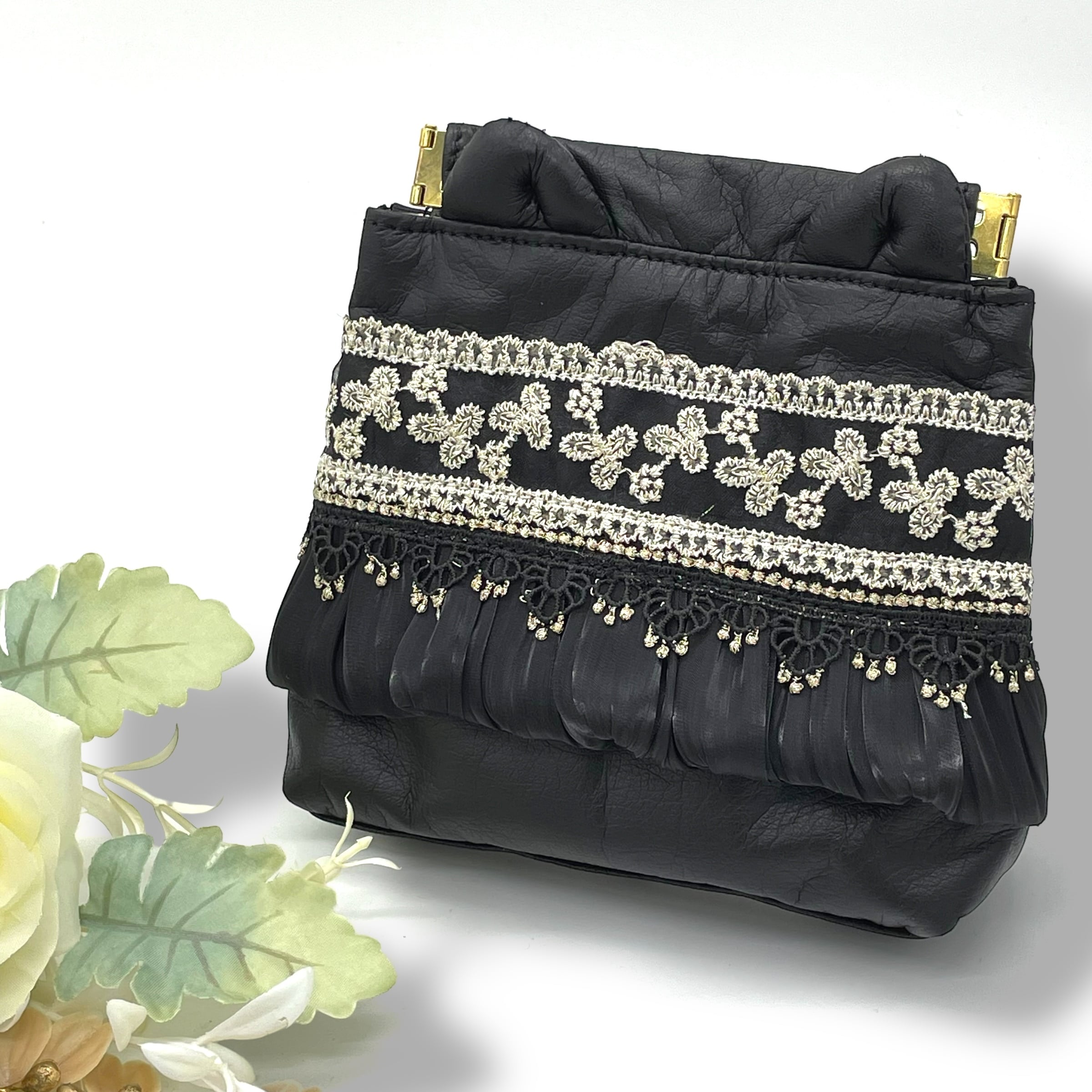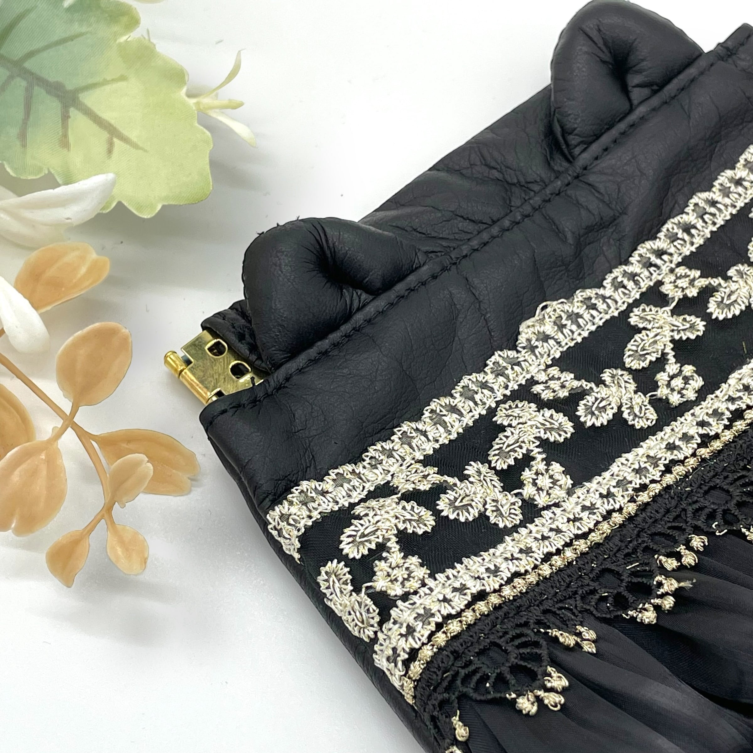 上品でゴージャスな、猫モチーフのバネ口金ポーチ。