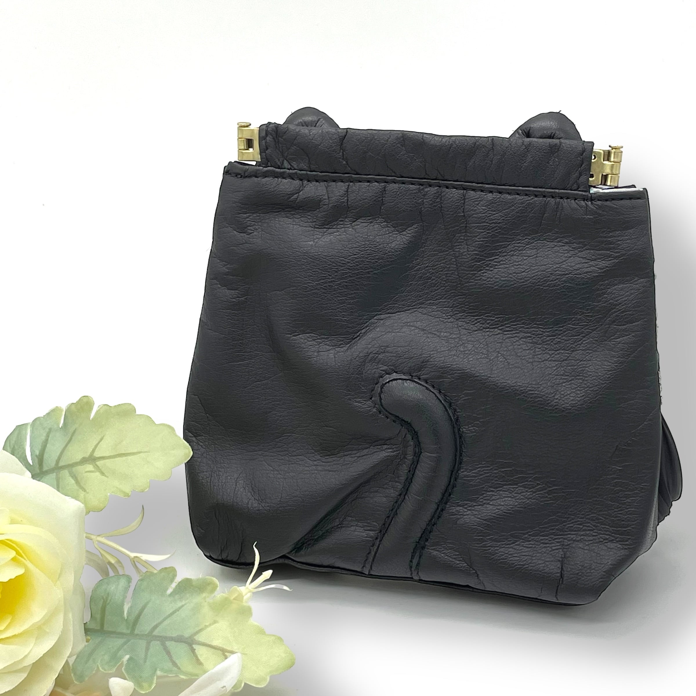 黒猫バネ口金ポーチ(レザー Ver.)