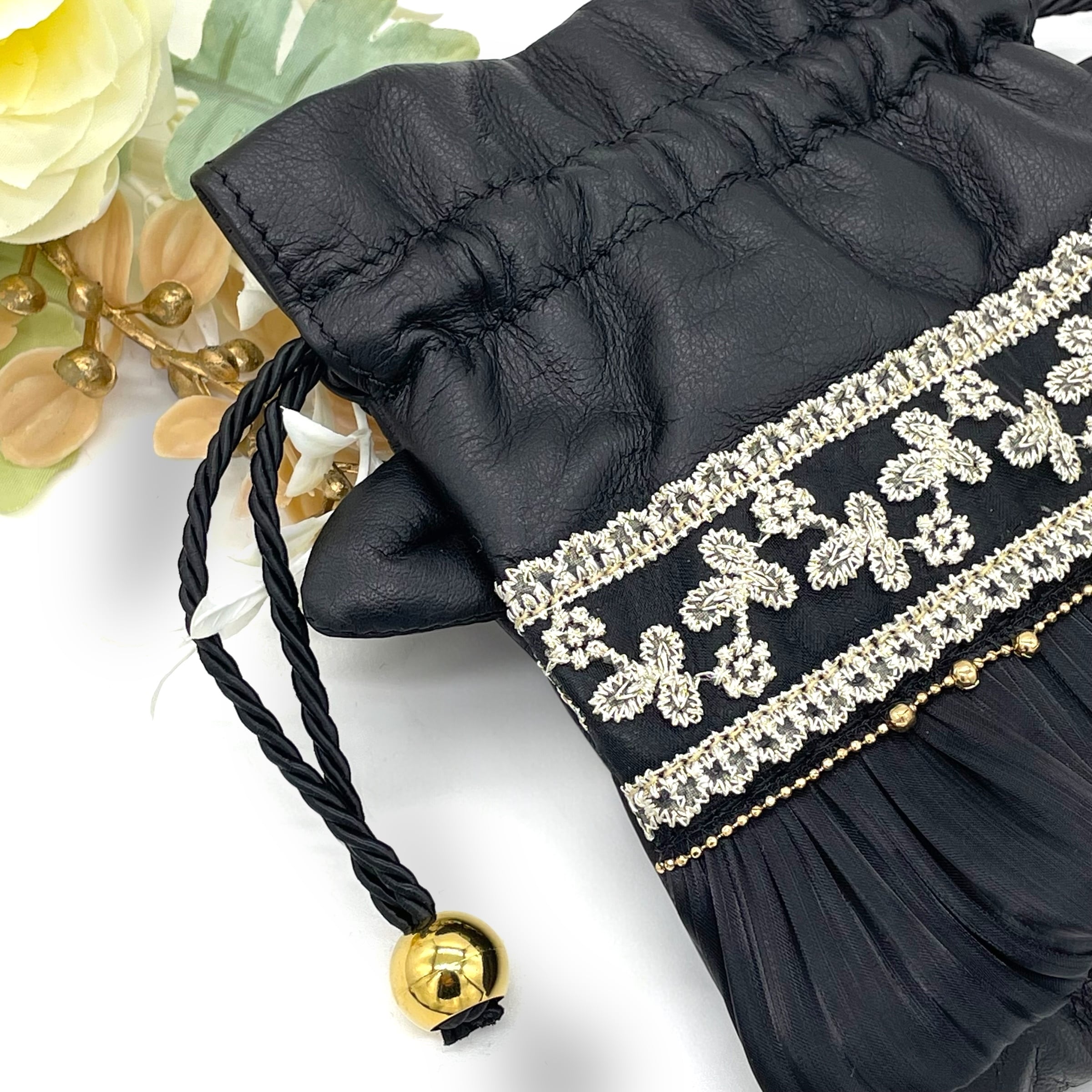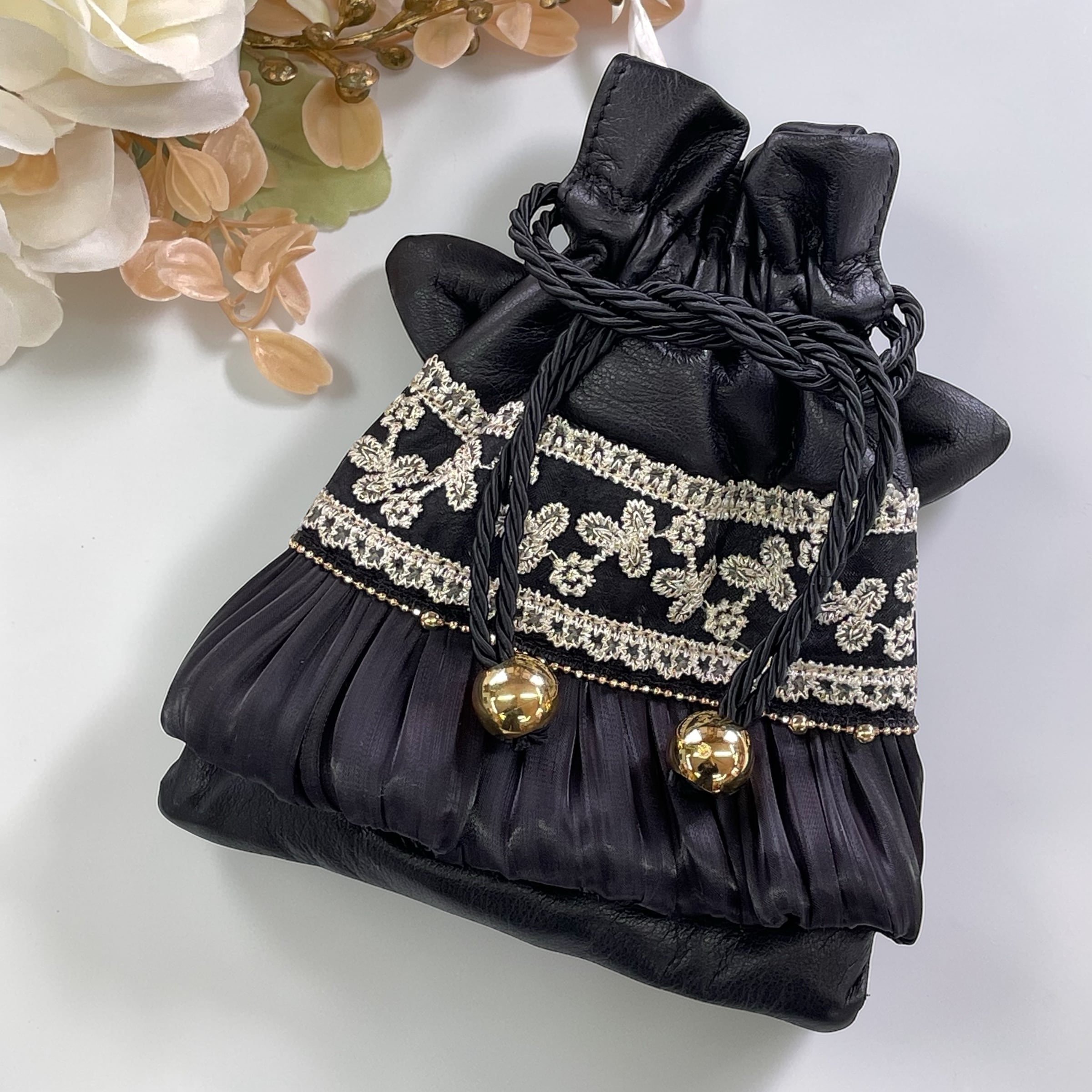 上品でゴージャスな黒猫巾着。
